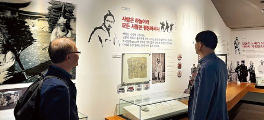 전시실을 돌아보면서 신운용 교수는 “동학운동은 성리학 기반 신분제 폐지와 ‘인내천’(평등사상)을 천명하면서 ‘근대’의 출발점이 됐다”고 설명하고 “4·19, 5·18, 6·10, 촛불혁명, 빛의 혁명으로 이어지는 시민 저항의 역사는 바로 우리 몸에 동학의 정신이 이어지고 있다는 증거”라고 강조했다.