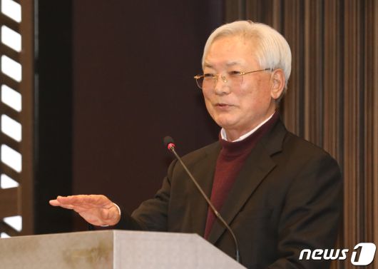 송기인 부마민주항쟁기념재단 이사장이 22일 오후 경남 창원시 마산합포구 오동동 웨딩그랜덤 2층에서 열린 '부마민주항쟁 증언록 출판기념회'에서 발언을 하고 있다. 2019.2.22/뉴스1 ⓒ News1 여주연 기자 |