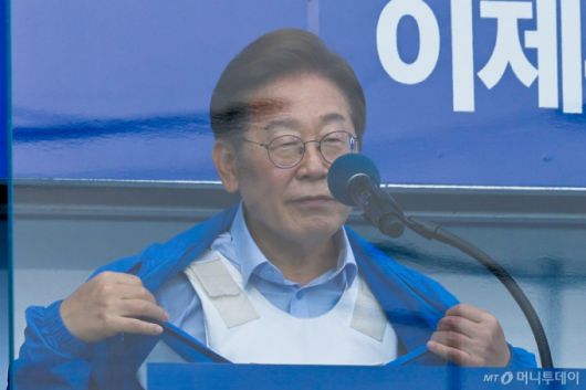 이재명 더불어민주당 대선 후보를 향한 테러·살해 위협에 대응하기 위해 설치된 방탄유리막과 관련한 국민의힘의 공세가 이어지고 있다. 김문수 국민의힘 후보가 본인의 경호 인력을 최소화하는 등 이 후보의 경호 강화와 반대되는 행보를 이어가자, 민주당은 "용감이 아닌 만용"이라고 비판하고 나섰다.
