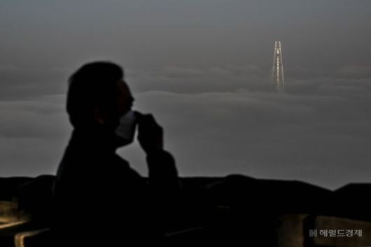 경기도 광주시 남한산성에서 바라본 롯데월드타워 일대가 미세먼지와 황사로 인해 뿌연 모습을 보이고 있다.[임세준 기자] |