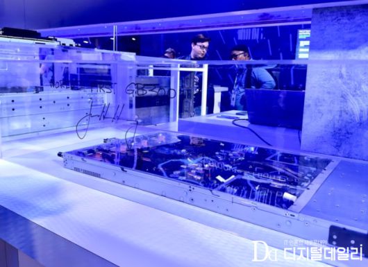 특히 수랭식 서버들의 경우 모두 ‘다이렉트 리퀴드 쿨링(DLC)’ 장치가 탑재된 모습으로, 최근 냉각 기술의 대세를 짐작케 했다. 수랭식 서버는 공랭식 대비 열 제어와 전력 효율이 뛰어나 AI 학습 및 추론에 최적화된 제품으로, 액침냉각 대비 비용과 복잡도가 낮아 실제 도입 속도가 빠르다는 점에서 업계의 높은 관심을 받고 있다.