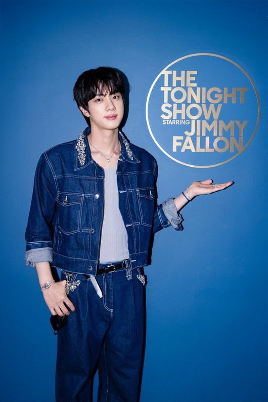 방탄소년단 진은 22일(이하 한국시각) 방송된 미국 NBC ‘더 투나잇 쇼 스타링 지미 팰런’(The Tonight Show Starring Jimmy Fallon)에 출연했다. 지난해 11월 이 프로그램에서 솔로 무대를 선보인 이후 약 6개월 만의 귀환이다.