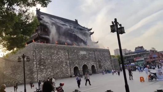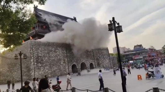 21일 홍콩 싱타오 등에 따르면 지난 19일 오후 6시 30분경 안후이성 츠저우시 펑양현에 있는 명나라 시대 건축물 ‘명중도 고루’(明中都鼓楼)의 기와가 대거 붕괴됐다.