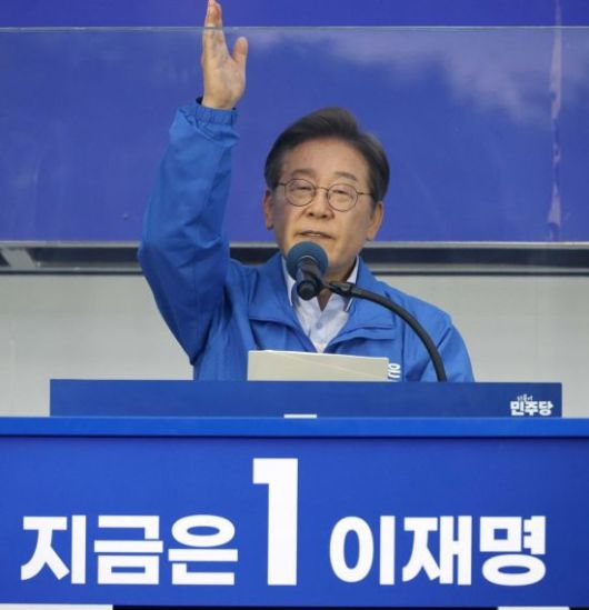 이재명 더불어민주당 대선후보가 21일 인천 계양역 광장에서 열린 유세에서 지지를 호소하고 있다. 2025.5.21 김현민 기자 |