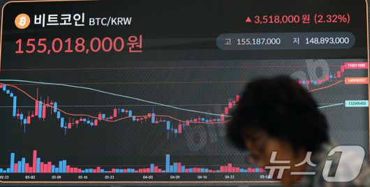 (서울=뉴스1) 황기선 기자 = 22일 서울 서초구 빗썸라운지 전광판에 비트코인 등 가상자산 시세가 표시되고 있다. 이날 비트코인은 글로벌 코인 시황 중계사이트인 코인마켓캡에서 오전 10시를 전후로 11만724달러까지 치솟아 11만달러를 돌파했었다. 비트코인이 11만달러를 돌파한 것은 사상 처음이다. 이로써 비트코인은 지난 7일간 6.63%, 한 달간은 25.12%, 1년간은 56.10% 각각 급등했다. 2025.5.22/뉴스1