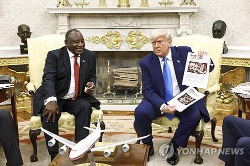 트럼프 대통령은 이날 라마포사 남아공 대통령을 백악관 집무실에서 만난 자리에서 남아공의 '백인 농부 집단 살해' 의혹을 거론했다.