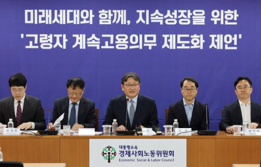 [세종=이데일리 서대웅 기자] 법정정년(현행 60세) 연장 대신 정년퇴직 후 국민연금 수급연령(65세)까지 재고용(계속고용)을 의무화하자는 경제사회노동위원회(경사노위) 공익위원들의 제안을 놓고 “한계가 뚜렷하다”는 지적이 경사노위 공익위원에게서 나왔다. 60세 이후에 일할 수 있는 기회를 기업 재량에 맡겼다는 지적이다.
