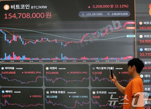 (서울=뉴스1) 황기선 기자 = 22일 서울 서초구 빗썸라운지 전광판에 비트코인 등 가상자산 시세가 표시되고 있다. 이날 비트코인은 글로벌 코인 시황 중계사이트인 코인마켓캡에서 오전 10시를 전후로 11만724달러까지 치솟아 11만달러를 돌파했었다. 비트코인이 11만달러를 돌파한 것은 사상 처음이다. 이로써 비트코인은 지난 7일간 6.63%, 한 달간은 25.12%, 1년간은 56.10% 각각 급등했다. 2025.5.22/뉴스1