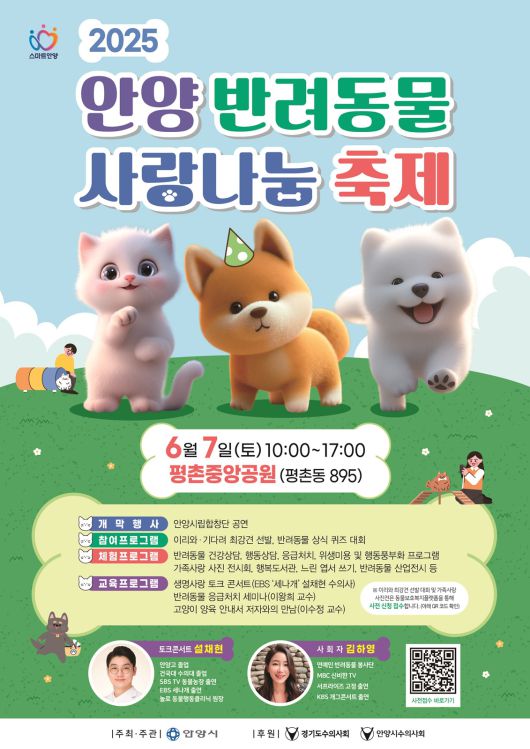 안양시는'2025 안양 반려동물 사랑나눔 축제'를 오는 6월 7일 오전 10시부터~오후 5시까지 평촌중앙공원에서 개최한다고 22일 밝혔다.