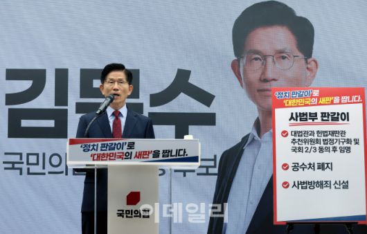 [이데일리 방인권 기자] 김문수 국민의힘 대선 후보가 22일 오전 서울 여의도 국민의힘 중앙당사 다목적홀에서 열린 “정치를 판갈이 합니다” 정치개혁 관련 긴급 기자회견에서 발언을 하고 있다. |