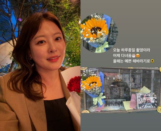 심진화는 22일 자신의 SNS에 "오늘 하루종일 촬영이라 어제 다녀옴. 올해는 예쁜 해바라기로"라는 글과 함께 한 장의 사진을 게재했다.
