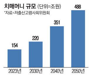 저출산고령사회위원회에 따르면 국내 치매머니 규모는 2050년 488조원에 달할 것으로 추정된다.