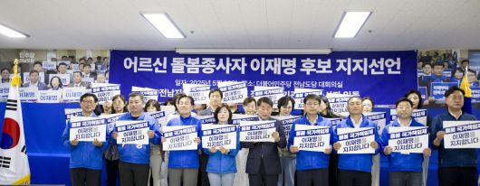 전남에서 15만명 어르신을 대상으로 직접 돌봄서비스를 제공하고 있는 돌봄종사자들이 22일 더불어민주당 이재명 대통령 후보에 대한 공식 지지를 선언했다.