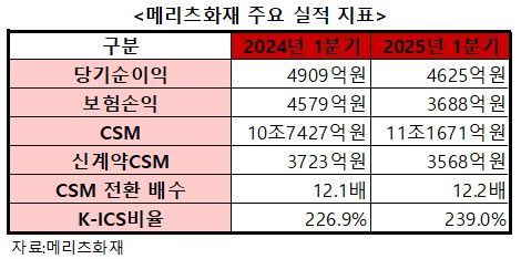 메리츠화재는 CSM 규모가 주춤한 가운데도 ‘실질 가치’에 중점을 둔 영업을 통해 신계약 CSM 전환 배수(신계약 CSM을 월납 환산보험료로 나눈 값)는 오히려 상승했다고 강조했다. 신계약 CSM 전환 배수는 약 12.2배, 인보험은 12.5배로 전년 동기 대비 각각 0.2배, 0.1배 개선됐다.