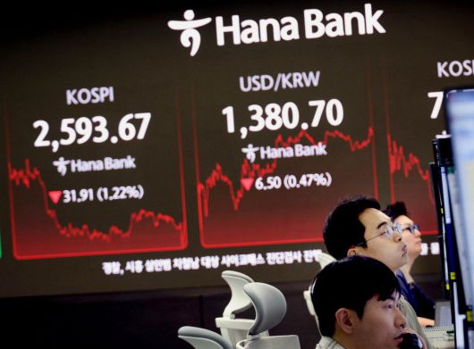 달러당 원화값이 22일 전 거래일 대비 5.9원 상승한 1381.3원에 주간거래를 마감(오후 3시 30분)했다. 주간 종가 기준으로는 작년 11월 5일(1378.6원) 이후 6개월 반 만에 최고치다. 장중 한때 달러당 원화값은 1370원대까지 상승하기도 했다. 한미 양국이 환율 관련 협의를 진행하는 가운데 원화 강세가 나타날 것이란 전망이 커짐에 따라 원화값은 최근 지속적으로 상승하고 있다. 이날 서울 하나은행 본점 딜링룸 전광판에 원화값과 코스피 등이 표시돼 있다. 이충우 기자 |