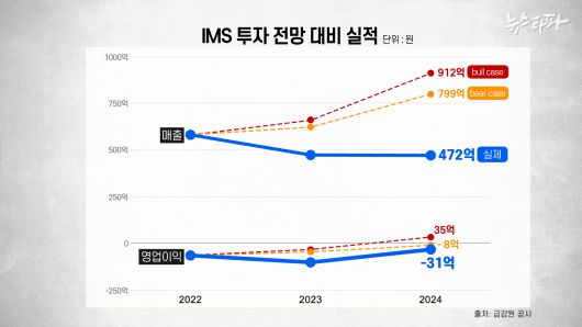 2022년까지 재무제표를 보면 계속해서 영업 손실이 발생하고 있었고 당기 순손실도 계속 누적되고 있었습니다.오아시스가 평가한 투자 당시 IMS의 기업 가치가 적정했는지에 대해서도 의문이 제기된다. 2023년 5월 오아시스는 IMS의 경쟁력과 잠재력을 고려했을 때 그 가치가 1,290억 원에 달한다고 평가했고 이 가격에 맞춰 투자금을 이용해 지분을 인수했다. 뉴스타파는 당시 인수 가격이 적정하다고 볼 수 있는지 복수의 전문가들에게 평가를 의뢰했다.