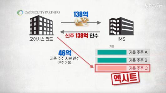 그해 6월 아이엠에스는 184억 원을 투자 받았다. 오아시스 에쿼티라는 투자회사가 대기업과 금융회사 등 여러 투자자들의 돈을 모아 201억 원짜리 펀드를 만들고, 그 중 184억 원을 아이엠에스에 투자했다.