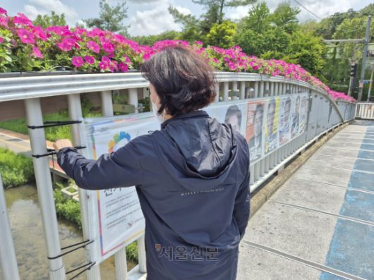 서울 서초구 선거관리위원회 공정선거지원단에서 활동하는 김모(55)씨는 지난 20일 서초구의 한 아파트 단지 쪽으로 이동하다 깜짝 놀랐다. 아파트 담장에 걸린 선거 벽보 중 한 후보자의 눈과 이마 부위만 날카로운 물건으로 갈가리 찢겨 있어서다. 김씨는 곧장 선관위에 보고했고, 수사 의뢰를 받은 서초경찰서는 벽보를 훼손한 용의자를 추적 중이다.