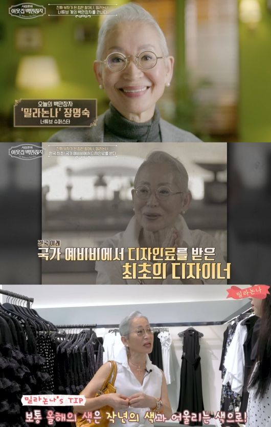 같은 날 EBS·E채널 공동 제작 프로그램 '서장훈의 이웃집 백만장자'(이하 '백만장자')에는 패션업계 전설이자 현 크리에이터 밀라논나(본명 장명숙)가 출연해 시선을 모았다. '이웃집 백만장자'는 서장훈이 부와 성공을 일군 '진짜 부자'를 찾아가 그들의 비결을 탐구하는 프로그램.