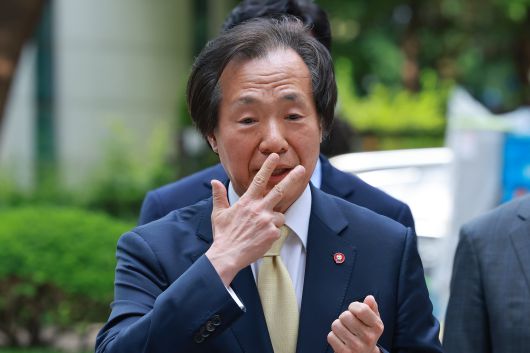 정기석 국민건강보험공단 이사장이 22일 서울 서초구 서울고등법원에서 열린 건보공단 담배회사 상대 손해배상 소송 항소심 12차 변론기일에 출석하기에 앞서 취재진 질문에 답하고 있다./연합뉴스 |