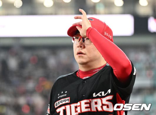 [OSEN=수원, 이대선 기자] 22일 오후 수원 KT위즈파크에서 2025 신한 SOL Bank KBO리그 KT 위즈와 KIA 타이거즈의 경기가 열렸다. KT는 쿠에바스, KIA는 양현종을 선발투수로 내세웠다 5회말 수비를 마친 KIA 양현종이 더그아웃으로 가고 있다. 2025.05.22 /sunday@osen.co.kr