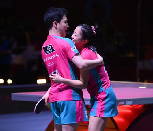 임종훈-신유빈 조는 22일(한국시간) 카타르 도하 루사일 스포츠 아레나에서 열린 린윤주-쳉이칭(대만)과의 대회 혼합복식 8강전에서 게임스코어 3-2(11-9 11-9 6-11 7-11 11-9)로 이겼다.