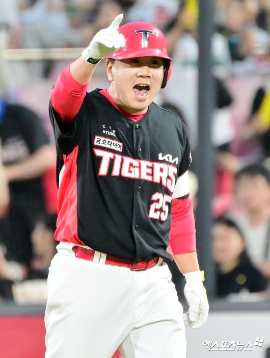 김도영은 타격 직후 특유의 빠른 발과 주루 센스까지 뽐냈다. KT 좌익수 김민혁이 자신의 타구를 잡아 홈으로 승부하자 지체 없이 2루까지 내달려 한 베이스를 더 얻어냈다. 김민혁의 송구 실책을 틈타 3루까지 내달리는 기염을 토했다.