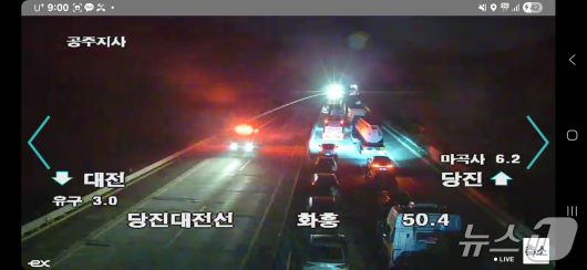 이 사고로 해당 구간 교통이 전면 통제돼 정체가 빚어지고 있다. 도로공사는 안전안내문자를 통해 해당 구간 운행 차량의 우회를 당부했다.
