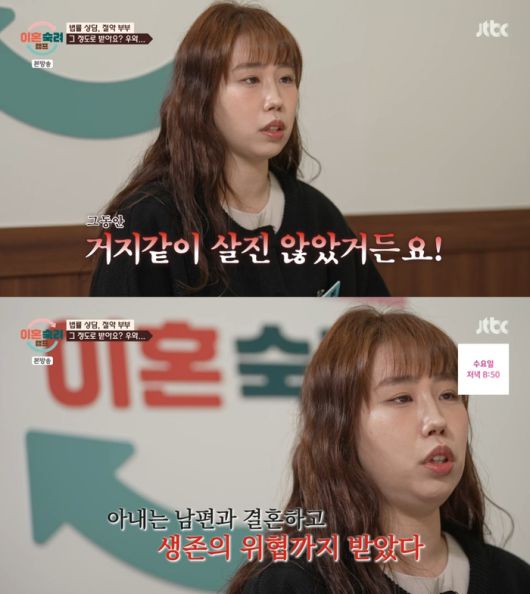 양나래 변호사가 “결혼 전 남편이 빚을 숨긴 사실만으로 완벽한 유책이 되지 않는다”고 하자 아내는 “나는 실제로 남편 때문에 돈을 다 썼다. 알지 않냐. 신용불량자여서 아무것도 할 수 없는 사람을 온전한 사람으로 만들어 줬는데 그건 말이 안 된다고 본다”고 목소리를 높였다.