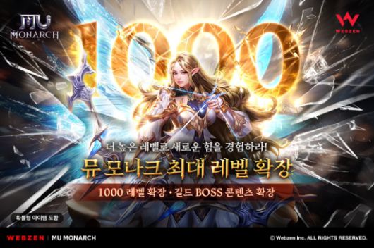㈜웹젠(대표 김태영)은 5월 23일 모바일 MMORPG '뮤 모나크'에서 서버 캐릭터 최대 레벨을 900에서 1,000으로 확장한다고 밝혔다.