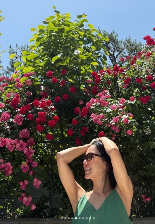 엄정화는 22일 오후 자신의 SNS에 “이 계절에 내가 사랑하는 장미, 슈퍼. 쉬는 날엔 꽃 #내가 오늘 좋아한 노래”이라는 멘트와 함께 여러 장의 사진을 게재했다.