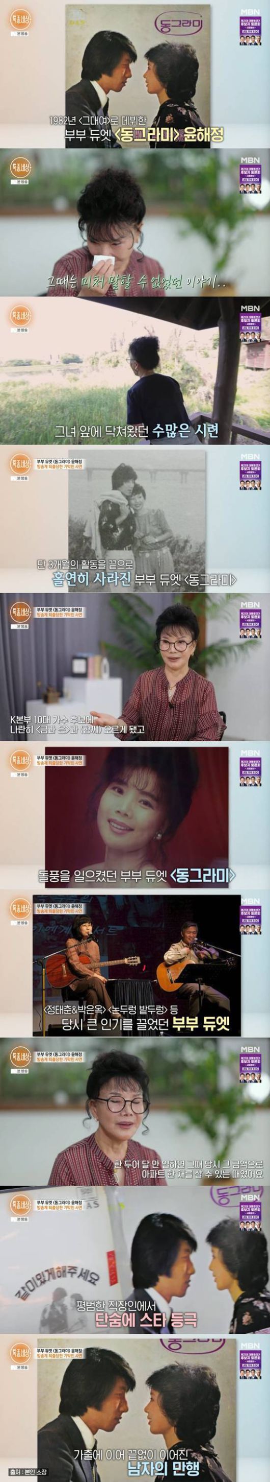 22일 방송된 MBN '특종세상'에는 부부듀엣 스타 동그라미 윤해정이 출연해 근황을 전했다.