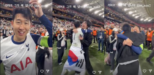 손흥민의 허리춤에는 자랑스러운 태극기가 묶여 있는 가운데 두 사람의 오랜 우정만큼 기쁨의 포효도 컸다.