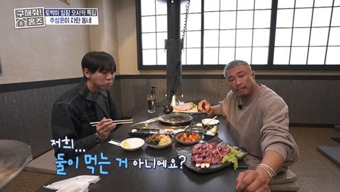 또, 오사카 쓰루하시역으로 자리를 옮긴 두 사람은 맛프라 점검에 들어갔다. 일본식 구운고기, 야키니쿠 가게가 즐비한 곳으로 두 사람은 추성훈의 단골 가게를 찾아 먹방에 돌입한다. 소식좌로 잘 알려진 주우재는 추성훈의 지도에 따라 역대급 고기 먹방을 보여 눈길을 끌었다.