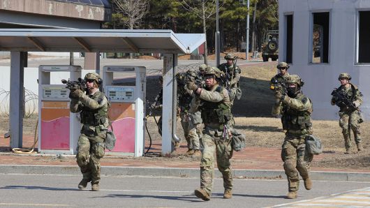 ▲ 지난 3월 19일 경기 파주시에서 실시된 한미연합연습 '자유의 방패' 도시 지역 작전 훈련에서 주한미군 장병이 목표물을 향해 돌격하고 있다.