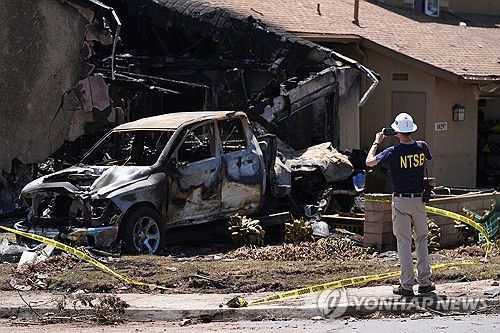 미 샌디에이고서 발생한 비행기 추락 사고 현장[AP=연합뉴스. 재판매 및 DB 금지]