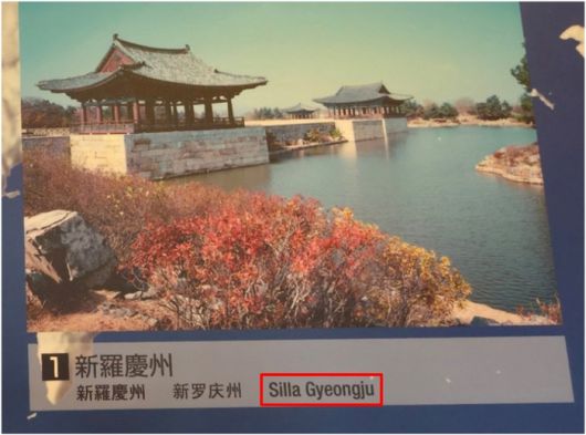 일본 오사카 역사박물관에서 ‘신라 경주’를 영어로 올바르게 표기한 모습. [사진 출처 = 서경덕 교수 SNS 갈무리]