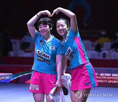 종별탁구선수권 여자복식에서 우승한 유한나(왼쪽) |