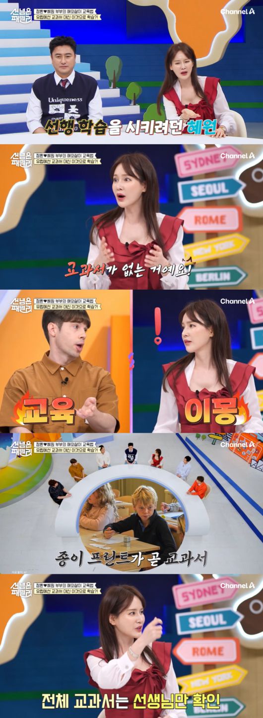 이혜원은 "교과서는 선생님만 갖고 있고 그걸 복사해서 준다. 그러니 선행을 못하게 한다"고 설명했고 패널들은 "좋은 거 같다", "그러니 애들이 스트레스가 없다"며 감탄을 표했다.