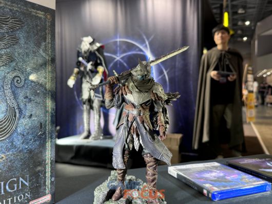 이외에도 실물 크기의 '추적자의 투구', '말레니아의 의수', '레이디' 캐릭터 의상, '수호자' 무기 레플리카, '엘든 링 밤의 통치자' 게임 본편과 '추적자' 스케일 피규어 및 스틸북 등이 포함된 '콜렉터즈 에디션' 구성품이 전시돼 시선을 사로잡는다. '추적자의 투구'는 5월 30일 발매 예정이며, '말레니아의 의수'는 물량 소진 전까지 현장에서 구매 가능하다.