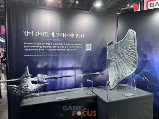우선 BNEK 부스에서 가장 눈에 띄는 것은 바로 '엘든 링 밤의 통치자' 특별전이다. 지난해 '엘든 링'의 DLC '황금 나무의 그림자' 특별전을 선보였던 것과 같이 이번 특별전에서는 게임의 대략적인 특징과 아트워크를 감상할 수 있다.