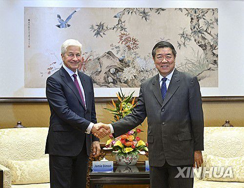 허리펑 中부총리, 다이먼 JP모건체이스 CEO와 회동[신화=연합뉴스. 재판매 및 DB 금지]