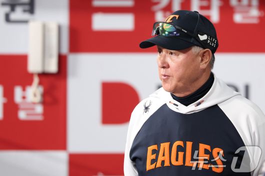 한화 김경문 감독이 11일 서울 구로구 고척스카이돔에서 열린 '2025 신한 SOL뱅크 KBO리그' 한화 이글스와 키움 히어로즈의 경기에서그라운드를 바라보고 있다. 2025.5.11/뉴스1 ⓒ News1 김성진 기자 |