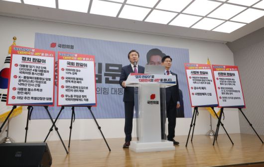 △김문수 국민의힘 대선후보가 지난 22일 '정치 개혁'을 주제로 한 기자회견에서 "국회의원 수를 줄이자는 압도적인 국민 여론에 따라 국회의원 정수를 10% 감축하겠다"며 "의원 수 감축은 의회 기득권을 포기하겠다는 가장 상징적 장면이자, 모든 공공 개혁의 동력으로 승화될 것"이라고 말했다. '의원 수 감축'이 '의회 기득권 포기'라는 얘기다.