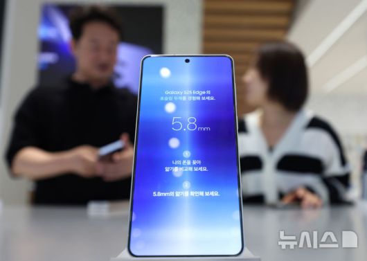 [서울=뉴시스] 김진아 기자 = 삼성전자가 초슬림 스마트폰 갤럭시 S25 엣지를 국내에 출시한 23일 서울 마포구 삼성스토어 홍대에서 시민들이 갤럭시 S25 엣지를 살펴보고 있다. 갤럭시 S25 엣지는 역대 갤럭시 S시리즈 중 가장 얇은 디자인에도 견고한 내구성을 갖춘 게 특징이다. 5.8㎜ 두께와 163g 무게로 초슬림·초경량 디자인을 구현했다. 2025.05.23. bluesoda@newsis.com |