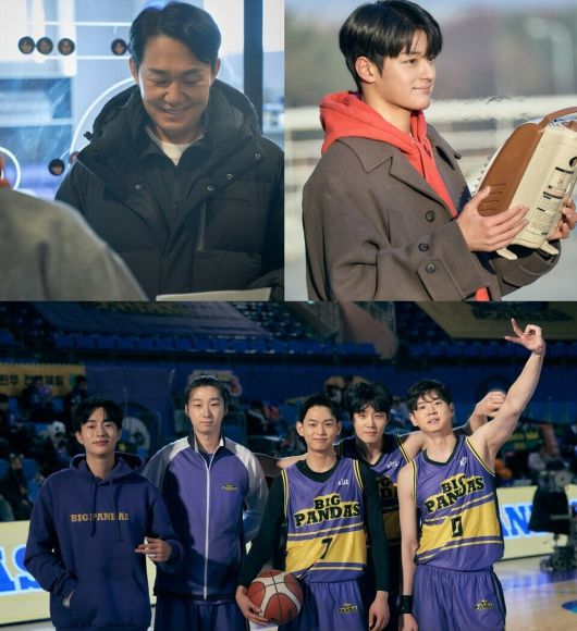또한 '빅판다스' 선수 역할을 맡아 약 두 달 반 동안 함께 훈련했던 김택, 권주석, 오현중, 강희구, 문수인이 함께 있는 모습은 실제 프로농구팀 버금가는 끈끈한 팀워크가 엿보여 시선을 사로잡는다. 여기에 박성웅까지 합세한 '빅판다스' 완전체 단체 사진은 이들이 선보일 뜨거운 에너지와 환상적인 호흡에 대한 기대감을 더욱 높인다.