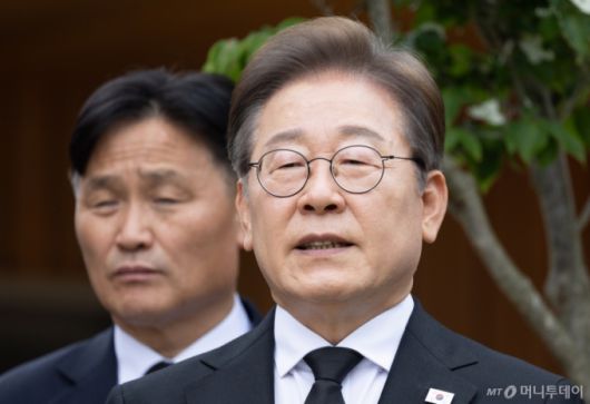 (김해=뉴스1) 이재명 기자 = 이재명 더불어민주당 대통령 후보가 고 노무현 전 대통령 16주기인 23일 오전 경남 김해시 봉하마을 노 전 대통령 관저에서 백브리핑을 하고 있다. 2025.5.23/뉴스1 Copyright (C) 뉴스1. All rights reserved. 무단 전재 및 재배포, AI학습 이용 금지. /사진=(김해=뉴스1) 이재명 기자 |