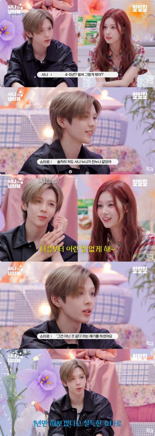 사나는 쇼타로와의 인연에 대해 "쇼짱이 데뷔하기 전이었고 한국에 온 지도 얼마 안 됐을 때였다. 너무 예전이라 언제 어떻게 만났는지 기억이 안 나는데 어쩌다가 보게 되고 알던 사촌동생 보는 것 같은 느낌"이라고 밝혔다. 쇼타로는 "저도 사나 누나가 친누나 같았다. 편하게 얘기도 해주고 고향에 있는 친누나 바이브"라며 애틋함을 드러냈다.