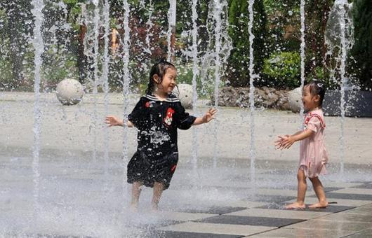 덥고 습한 공기 유입으로 찜통더위가 찾아온 21일 서울 성동구 서울숲에서 어린이들이 분수 물줄기를 맞으며 즐거워하고 있다. 연합뉴스 |
