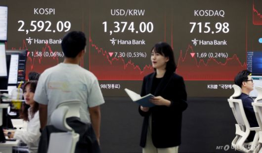 도널드 트럼프 미국 대통령의 감세안이 하원을 통과하자, 코스피가 2590선에서 약보합 마감했다. 감세안 통과 영향으로 채권 금리가 안정화되며 코스피는 상승하는 듯했으나 재생에너지, 2차전지 관련 주들이 하락하면서 지수를 끌어내렸다.
